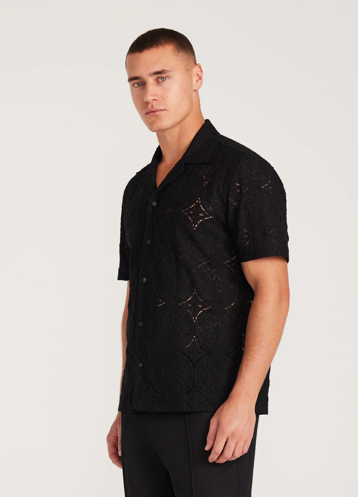 The Moasic Lace Short Sleeve Shirt boasts a relaxed fit and open neck camp collar, with cotton-blend lace from Japan. Accented with a moasic tiled pattern, it's an all-occasion piece that works effortlessly with anything in the collection.