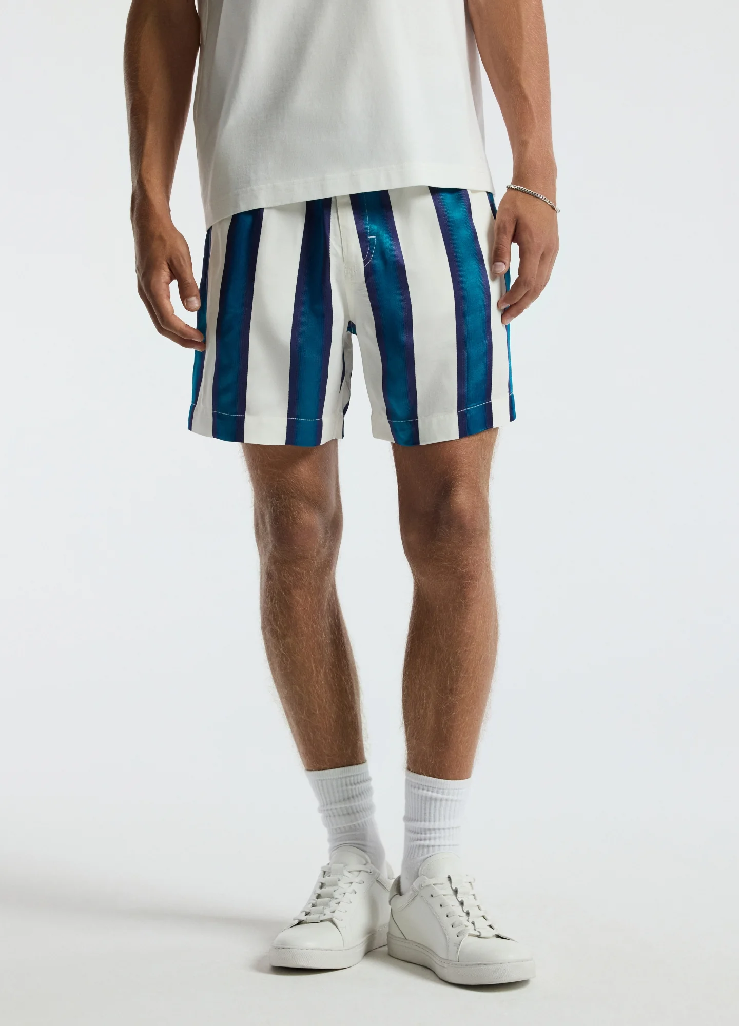 The Ombre Stripe Shorts make a bold statement in refined summer style. Crafted in Italy from mid-weight viscose fabric with lustrous, graphic ombre stripes, they deliver movement, texture and visual depth. Designed for versatility, they pair effortlessly with plain tops or silk shirts. Complete the look with the matching shirt for a coordinated, head-turning look.