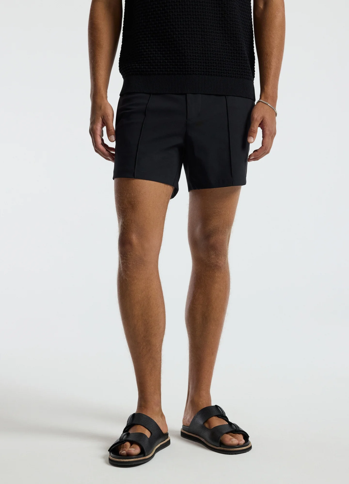 The Performance Pintucked Shorts blend tailored precision with modern functionality. Crafted in Italy from easy-care jersey, they offer all-day comfort with a refined, structured appearance. A pintucked front crease lends a sharp, tailored-inspired finish, while the flat front waistband, elasticated back and internal drawcord provide a flexible fit. Completed with belt loops, angled side pockets and a powder-coated CALIBRE button, these shorts deliver effortless versatility with a polished edge.