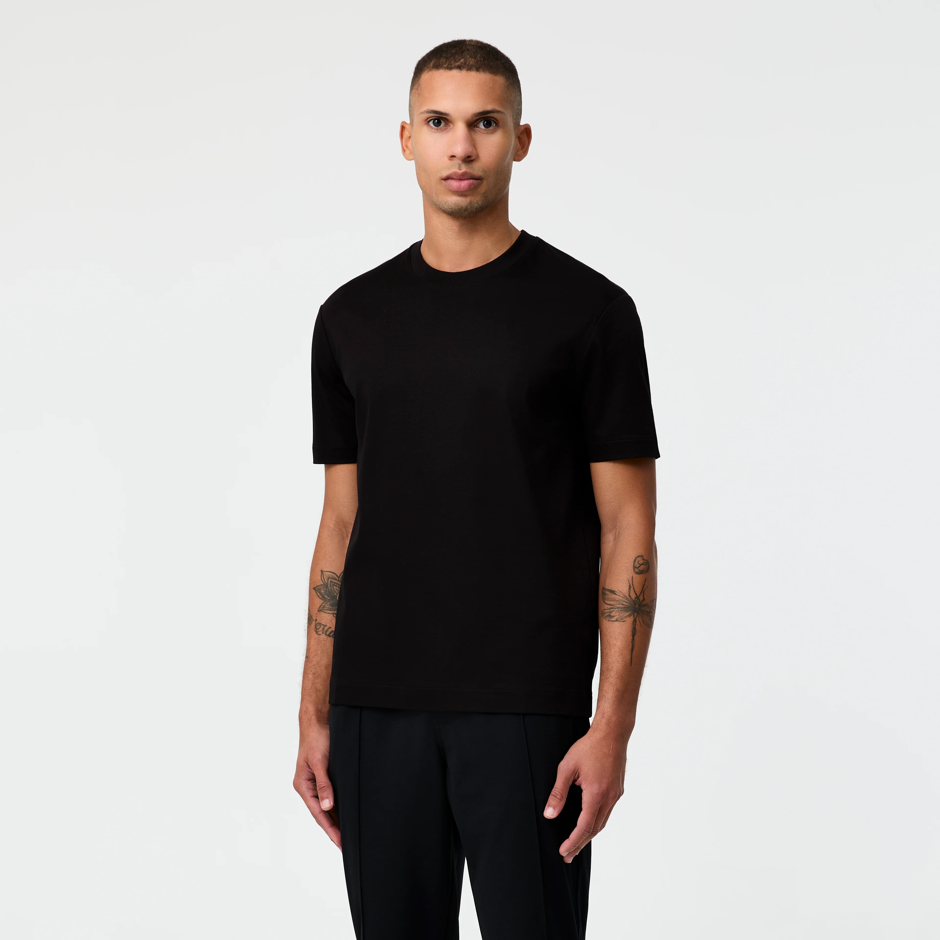Consider the Relaxed Fit Crew Neck T-shirt your new must-have wardrobe staple. Crafted in mercerised cotton with an engineered drop shoulder and a considered casual fit. This tee is about everyday comfort while maintaining that sleek, modern look. Add jeans or shorts with sneakers for an effortless weekend outfit, or pair it perfectly with any of our sweats.