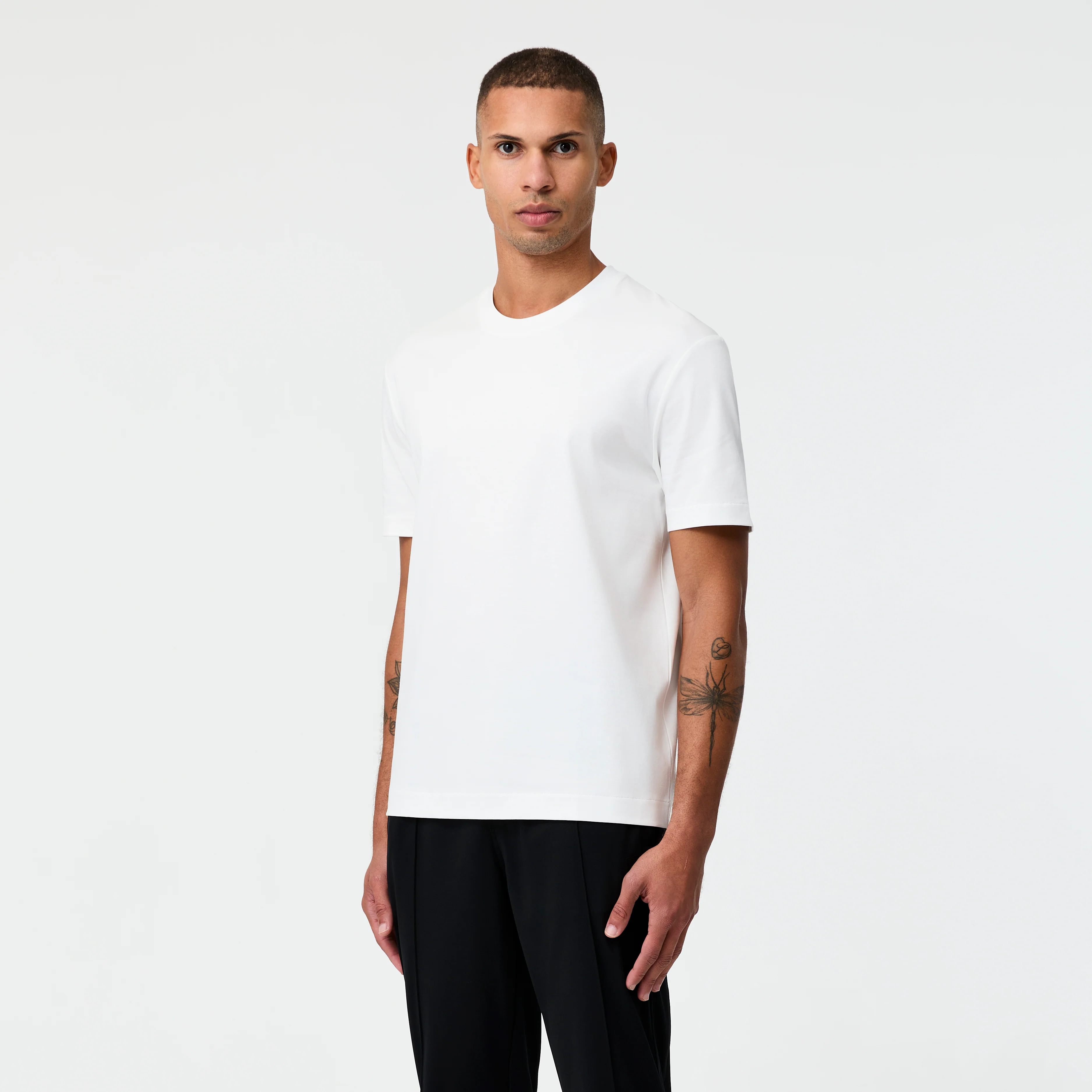 Consider the Relaxed Fit Crew Neck T-shirt your new must-have wardrobe staple. Crafted in mercerised cotton with an engineered drop shoulder and a considered casual fit. This tee is about everyday comfort while maintaining that sleek, modern look. Add jeans or shorts with sneakers for an effortless weekend outfit, or pair it perfectly with any of our sweats.