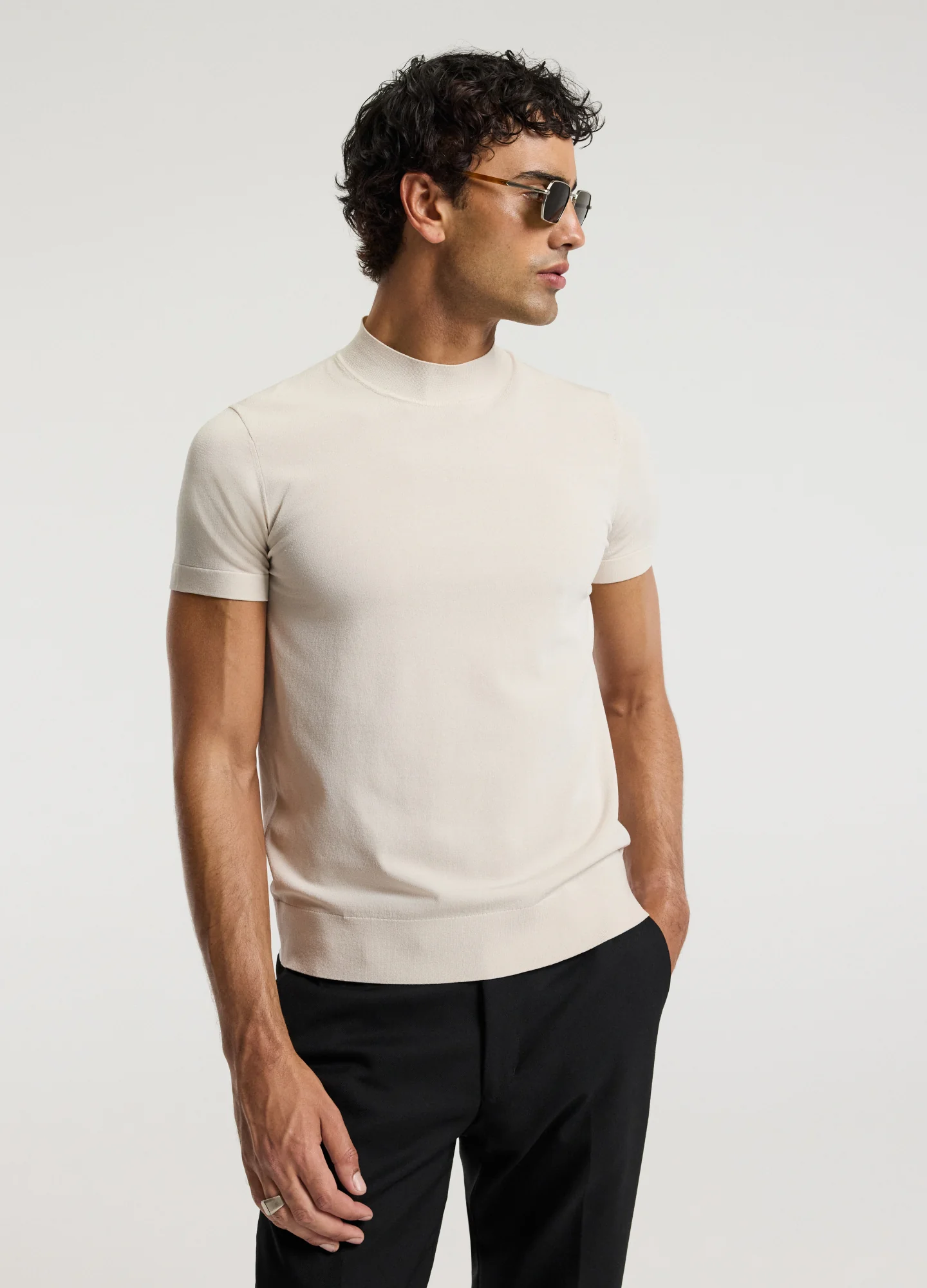 A fresh take on the everyday tee. Designed with a sleek mock neck and a compact knit structure, the Slim Tech Knit T-shirt brings an elevated edge with subtle athletic undertones. Crafted from CALIBRE's signature tech yarn, it delivers a soft feel with year-round wearability. Whether layered under a blazer or worn solo, it's built for effortless styling.