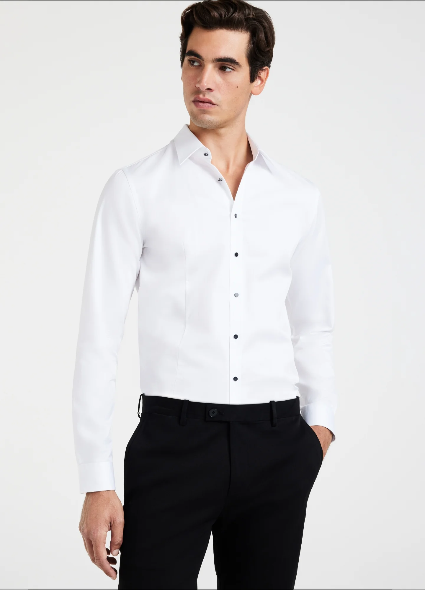 Tailored Fit Studded Twill Evening Shirt White