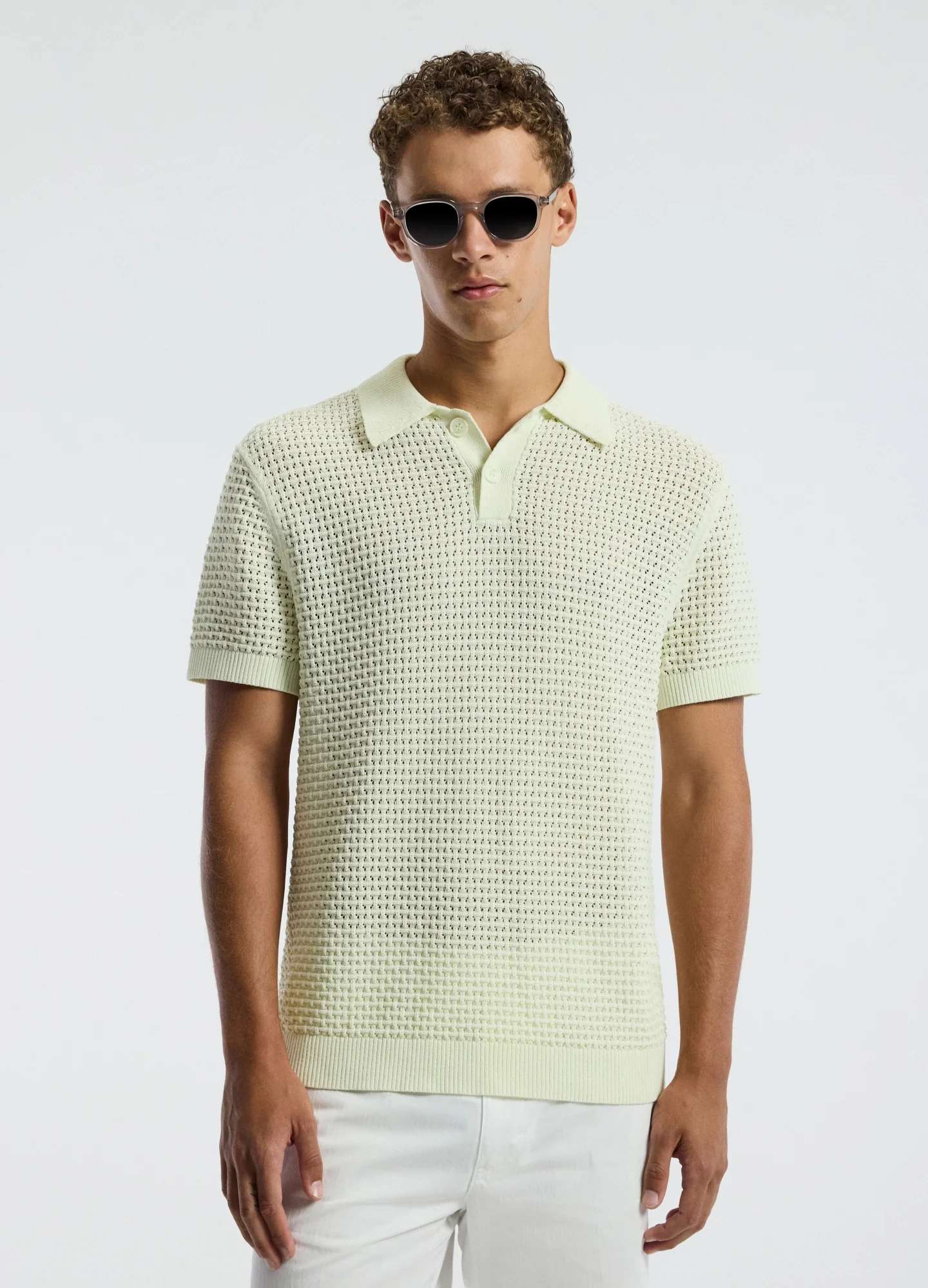 Textured Open Knit Polo Citron