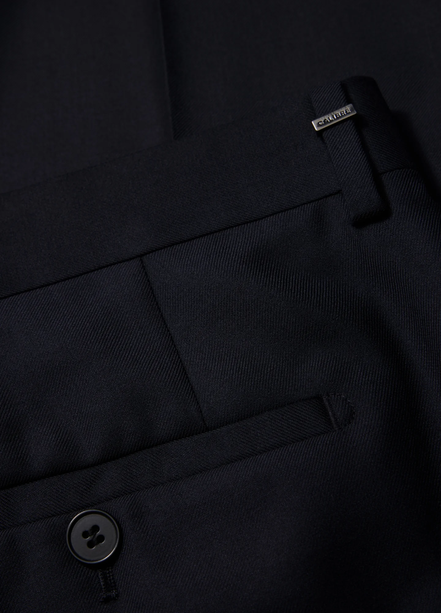 Crafted from luxurious Super 120’s Merino wool woven in Biella, Italy, the CALIBRE Wool Suit Pants offer a sleek, streamlined silhouette for timeless elegance. Designed to complement the matching jacket, they feature front leg lining, belt loops, and two side-entry pockets for practicality. Double welt pockets at the back add a refined finish, making these pants a sophisticated foundation for your tailored wardrobe.